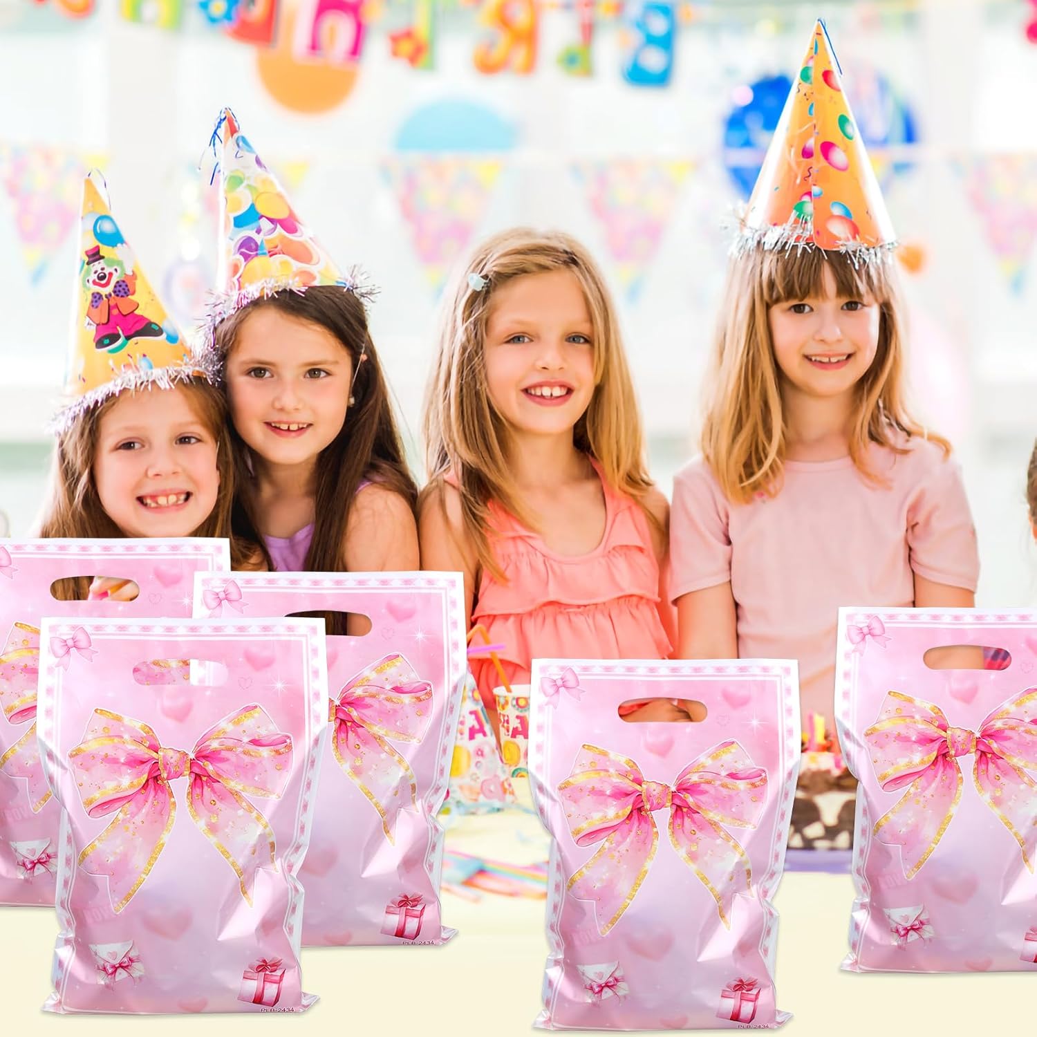 Product Size: Each pink plastic gift bag measure 25.5x16.5cm / 10x6.5in, making them ideal for holding party favors, candies, treats, small toys, or gifts for various celebrations.