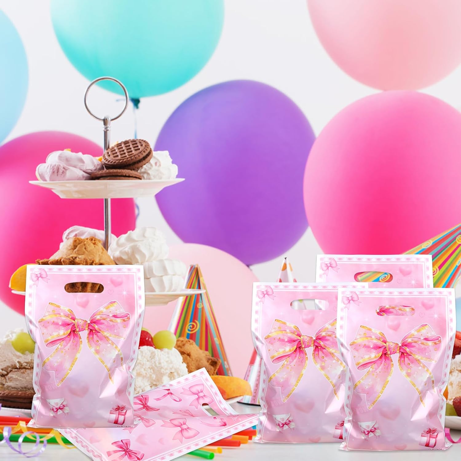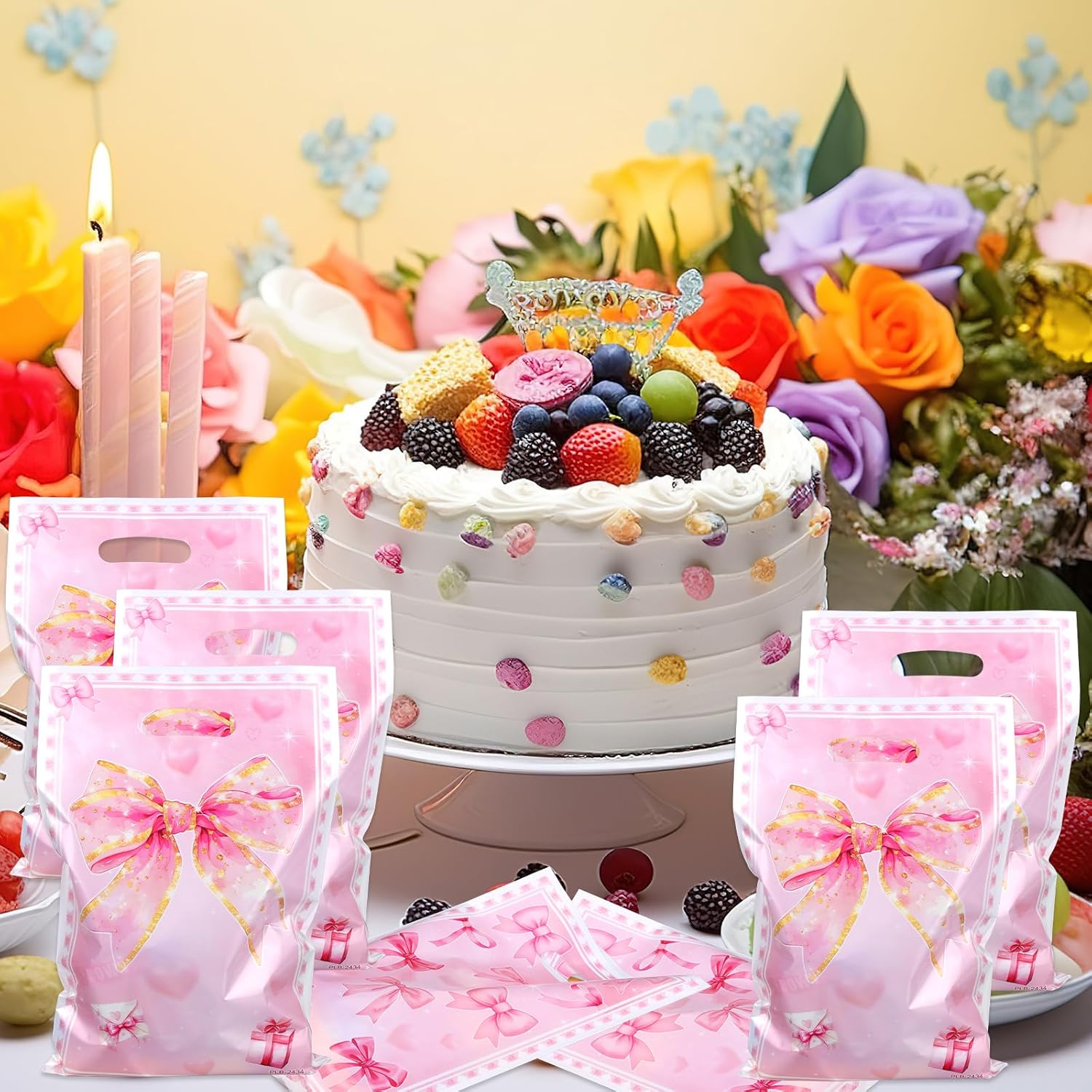 Package Includes: You will receive 50 plastic gift bags, featuring a stylish coquette bow pattern and a small pink gift design. Perfect for parties or retail use.